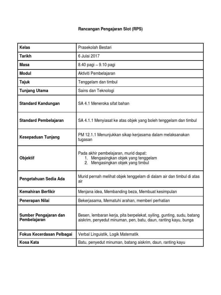 Rancangan Pengajaran Slot Sains Prasekolah Pdf
